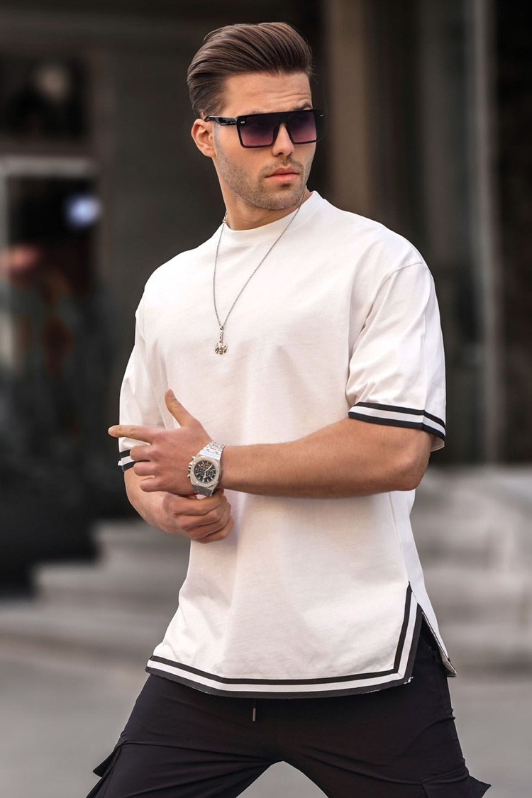 - Tricou pentru bărbăti cu o croială modernă, potrivit pentru ținute de zi cu zi și la modă.