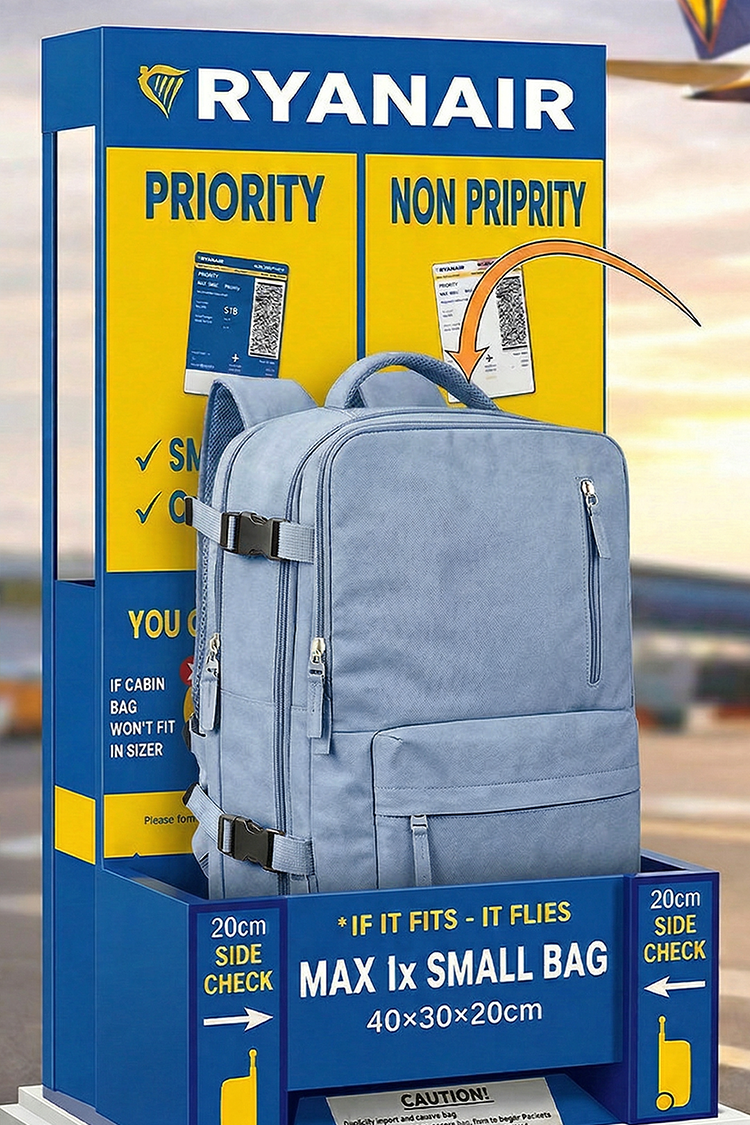 - Rucsacul este fabricat în conformitate cu cerințele privind bagajul de mână gratuit ale companiilor aeriene Ryanair, Wizzair, EasyJet, precum și Lufthansa, TUI FLY, Norwegian, Jet2, British Airways, Fly Emirates și Turkish Airlines.