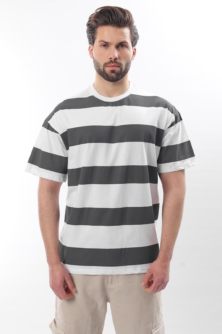- Modelul are un design clasic de tip oversize, culori contrastante și un model in dungi.