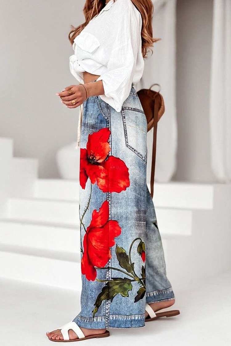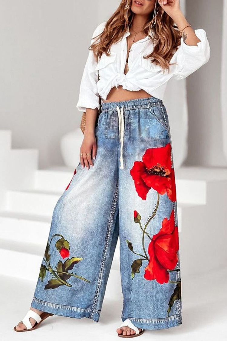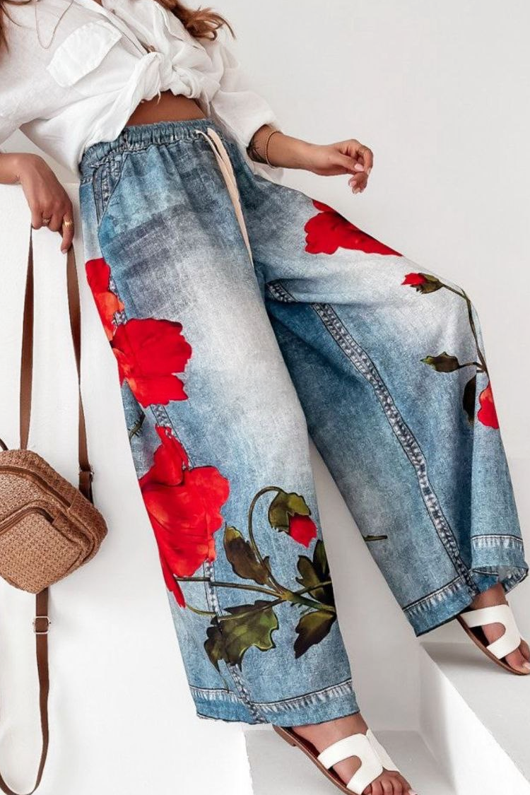 - Modelul are talie înaltă și elastică, legaturi reglabile, model floral și buzunare laterale.