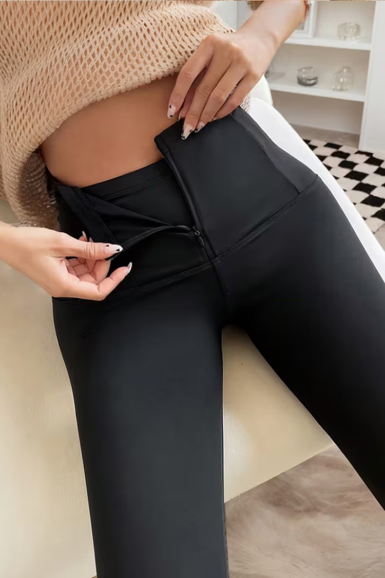 - Colanți de damă la modă, de culoare neagră, potriviți pentru diverse ținute de zi cu zi și sport.