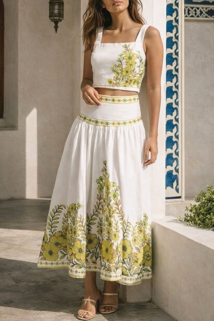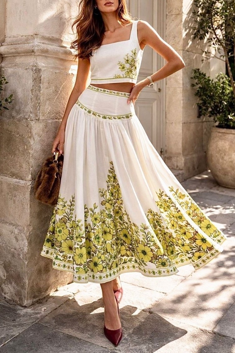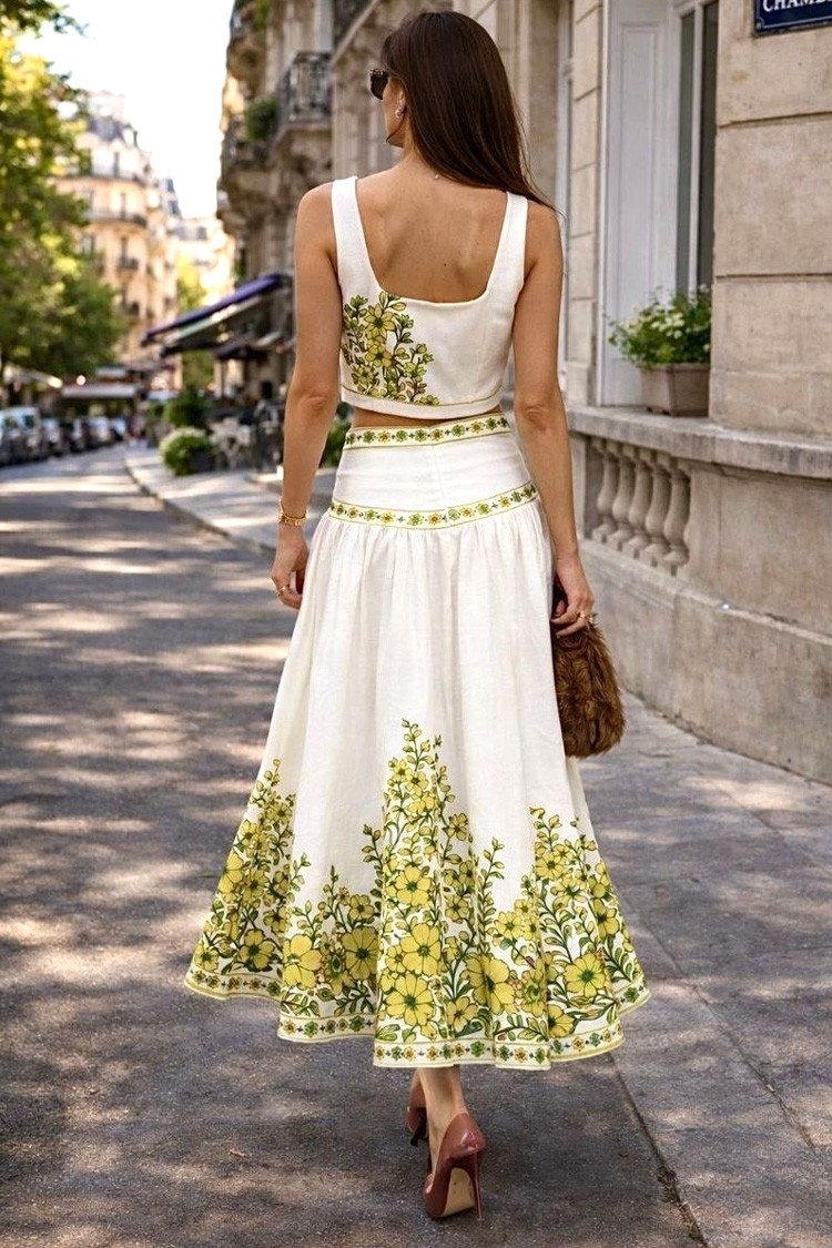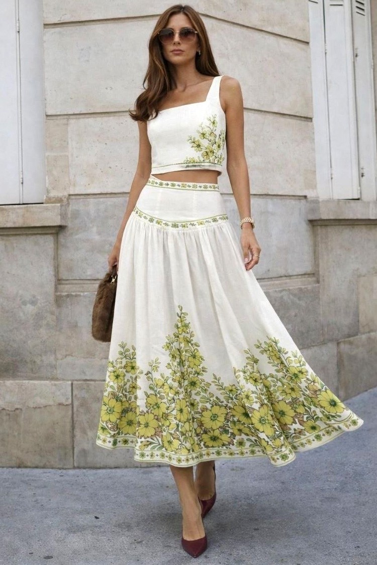 - Pentru un look încrezător, impecabil și modern, alegeți cu încredere acest set din două piese - o fustă midi și un top crop.