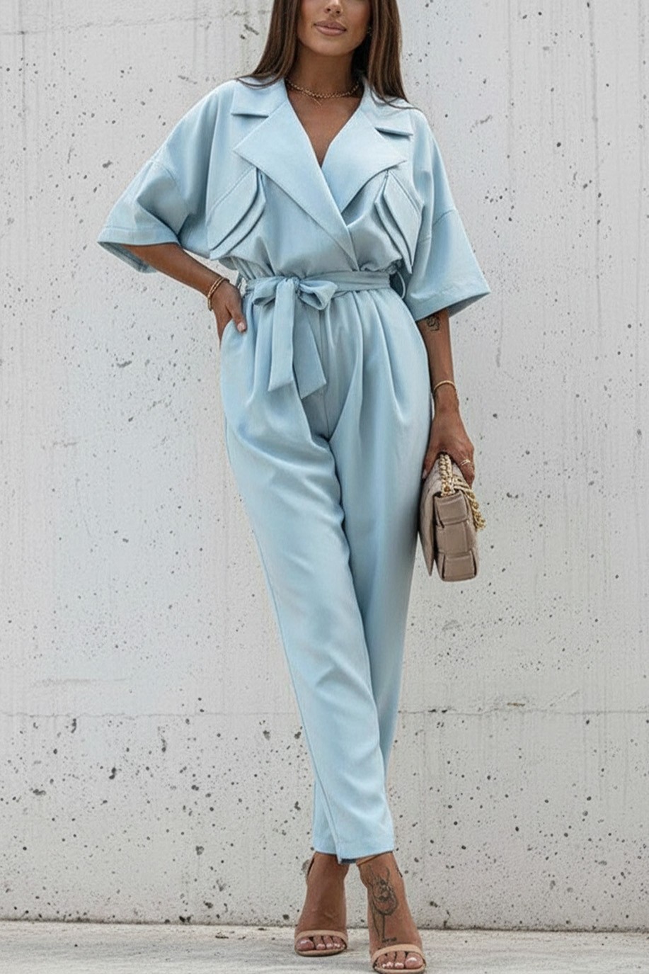 - Salopetă de damă cu o croială lejeră și un model monocromatic, potrivită atât pentru look-uri de zi cu zi, cât și moderne.