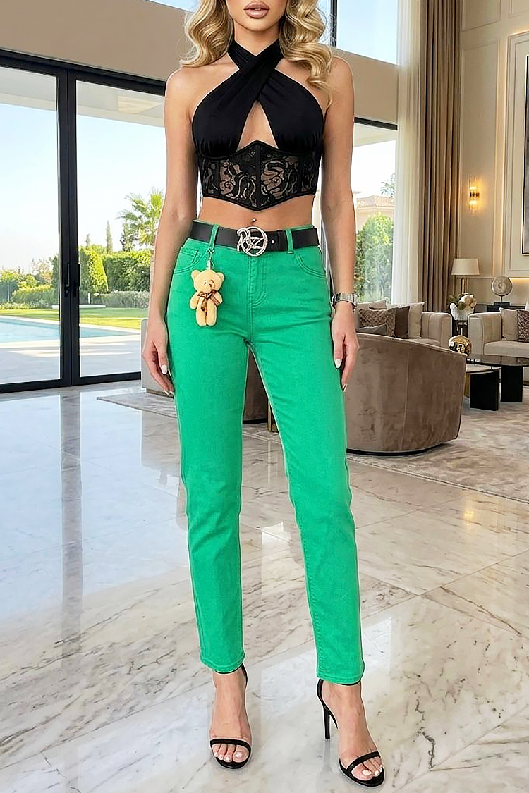 Model elegant de blugi, într-o culoare verde intensă, cu care nu vei trece neobservată.