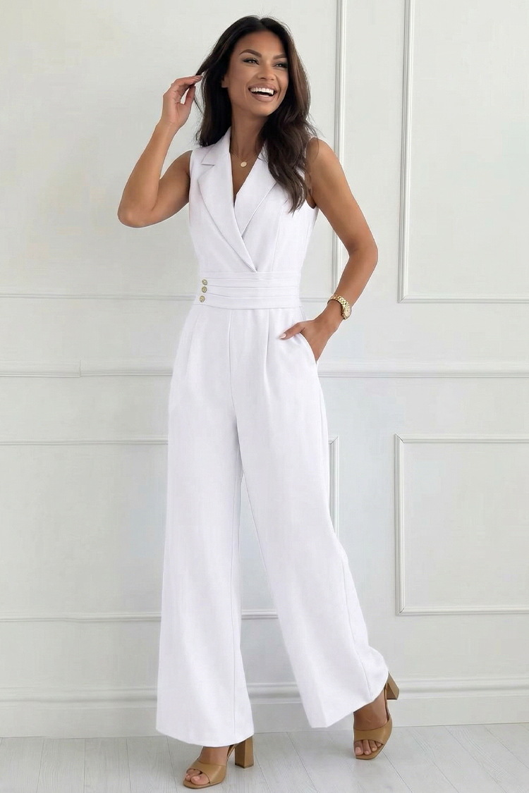 salopetă elegantă cu guler cu rever și nasturi aurii SELESTE WHITE