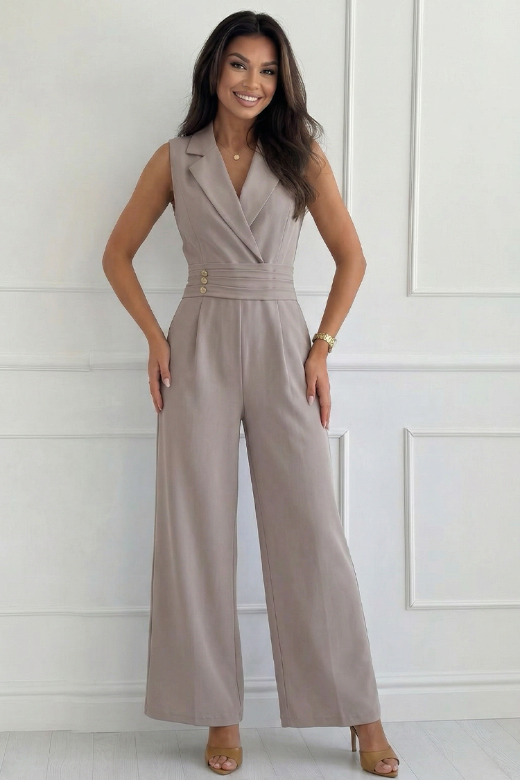 salopetă elegantă cu guler cu rever și nasturi aurii SELESTE MOCHA
