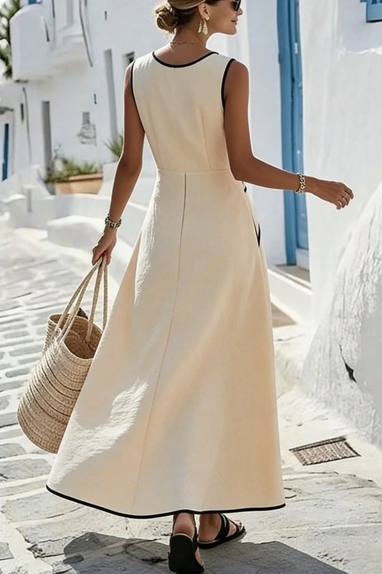 rochie lungă elegantă de vară cu margini negre contrastante ANRIELA