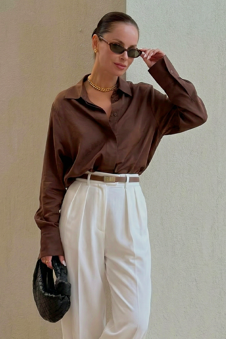 cămașă damă elegantă din satin cu mâneci lungi AYANDA BROWN